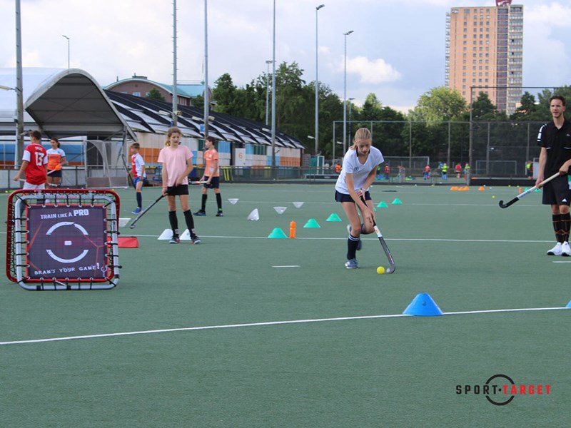 De Hockey rebounder van Sporttarget pronkt met het eigen ontwerp als een unieke promotie op het veld waar u aan het trainen bent! De perfecte sportmarketing tool.