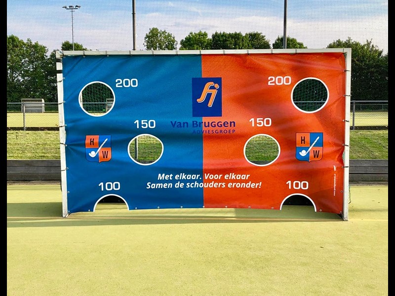De sportgatendoeken van Hockeyclub HCHW werden door Sportspromo gerealiseerd in opdracht van sponsor van Bruggen Adviesgroep. De Hockeytargets worden ingezet voor haar club activiteiten en als sportieve promotie. Een leuk spel element met uiteraard een extra leuke promotie voor de vereniging.