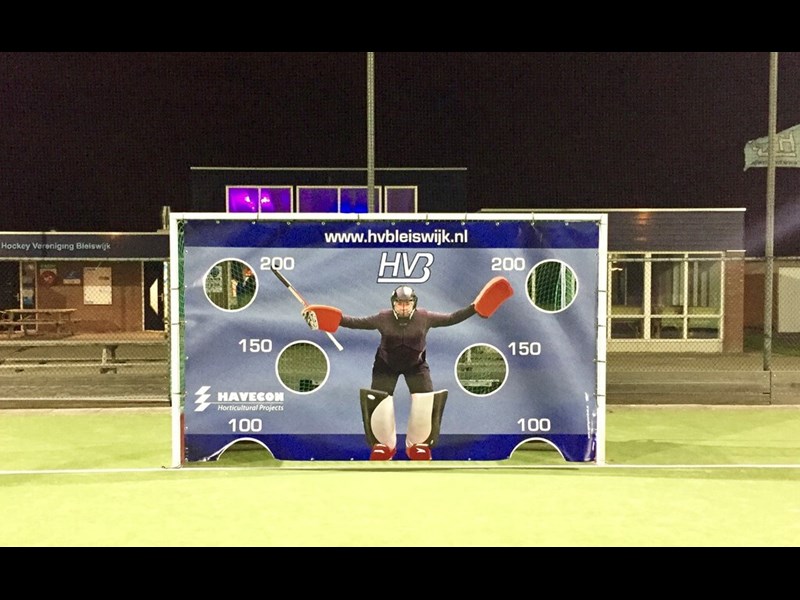 Het sportgatendoek van HV Bleiswijk werd door Sporttarget gerealiseerd in opdracht van de vereniging. De Hockeytarget worden ingezet voor activiteiten en als sportieve promotie. Een leuk spel element met uiteraard een extra leuke promotie voor HV Bleiswijk.