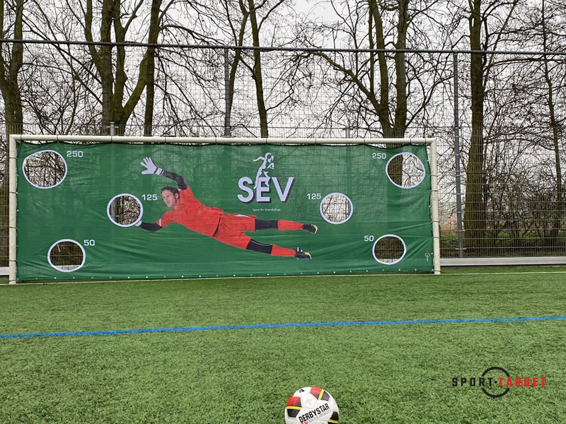 Voetbalvereniging Sev Leidschendam heeft een eigen ontwerp Soccer Target met de gaten en puntentelling naar wens om leuk op te kunnen trainen. Daarnaast een uitstekend spelelement voor de jeugd en activiteiten!