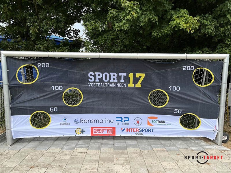 Voor Sport17 Voetbalschool realiseerden wij het ontwerp en de levering van het Sportgatendoek. Kijk voor het coole design samen met sponsoren en de perfecte promotie als spelelement voor de trainingen.