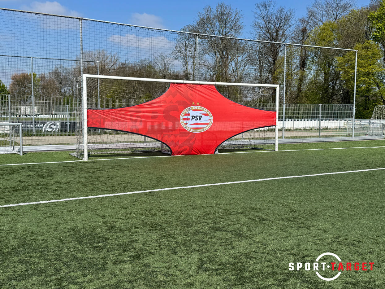 De Soccer Train Target van Sporttarget is hét professionele voetbal train target voor gerichte afwerktraining en schietoefeningen. Geen pionnen meer in het doel: hang eenvoudig en snel een voetbal schietdoek in het doel en train doelpunten maken met focus en precisie.