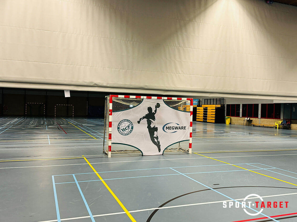 Wählen Sie eine Handball-Train Torwandplane von sporttarget.nl in individuellem Design mit Sponsor- oder Vereinslogo.