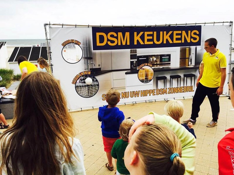 In opdracht van DSM keukens gevestigd in België leverde Sportspromo het promotioneel sportgatendoek. Voor de promotionele tour leverde Sporttarget een frame met target naar eigen ontwerp.