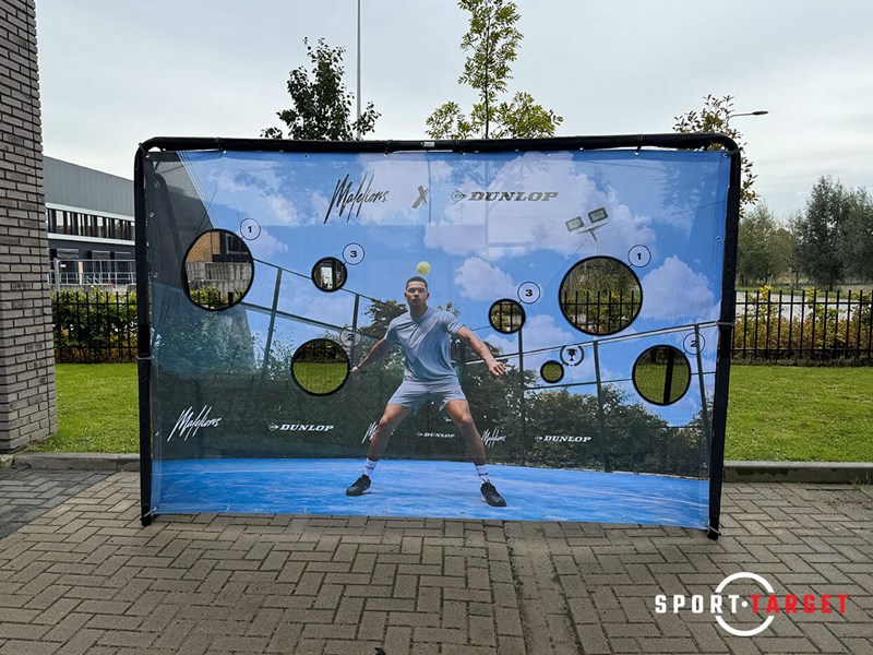 Onze Padel Promotion Target, ontwikkeld door Sporttarget, daagde de deelnemers uit om hun skills te tonen door gericht te slaan en punten te scoren door gaten in de target. Deze opstelling bracht een speelse competitie naar de baan en zorgde voor een spannende ervaring waarbij padelliefhebbers van alle niveaus konden deelnemen en plezier maken.