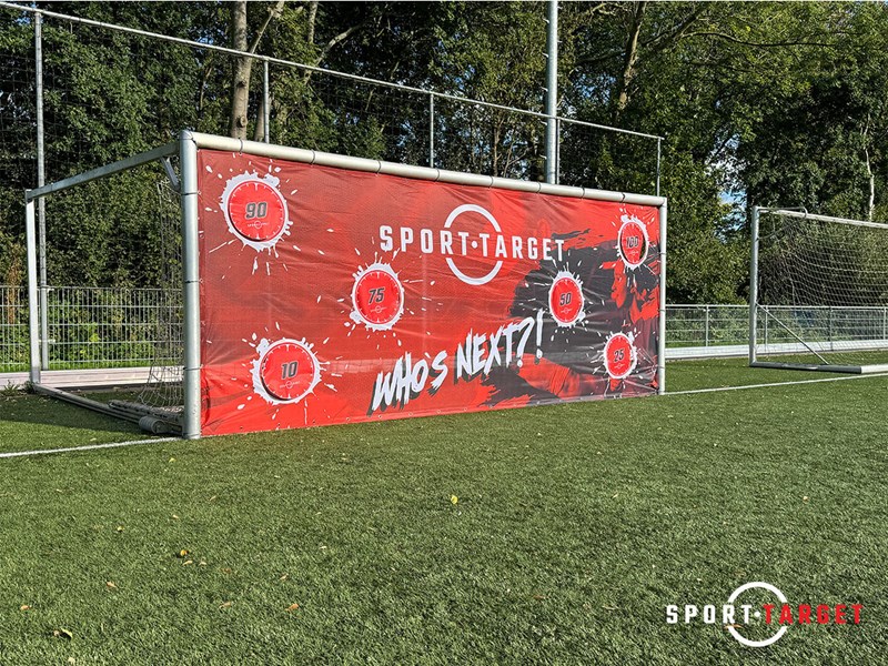 Sporttarget introduceert een compleet nieuwe versie van het traditionele gatendoek: het Soccer Target met "dichte" gaten. In plaats van de gebruikelijke open gaten, zijn de doelzones voorzien van speciale deurtjes/flappen die bedrukt kunnen worden met opvallende promotionele prints. Dit unieke design geeft een vernieuwde dimensie aan de klassieke voetbaldoeken, waardoor jouw training of evenement nóg uitdagender en interactiever wordt! ⚽