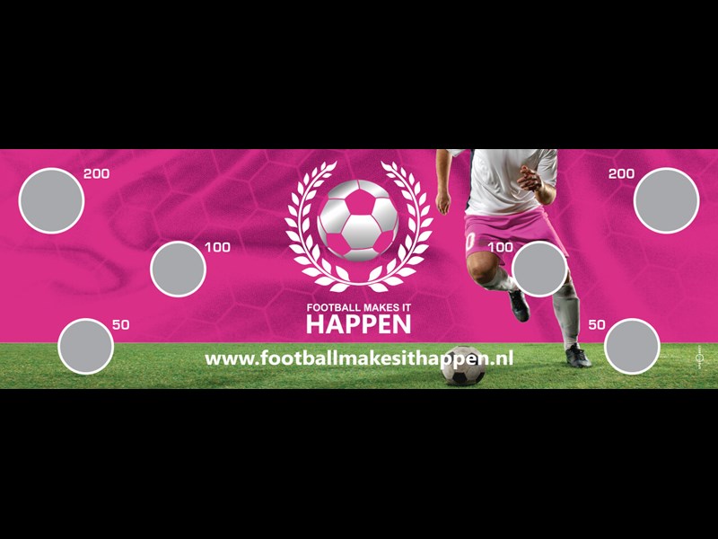 Stichting Football Makes It Happen heeft nu een eigen ontwerp Soccer Target met de gaten en puntentelling naar wens een uitstekend spelelement voor hun activiteiten en aandacht te vestigen op hun goede doel!